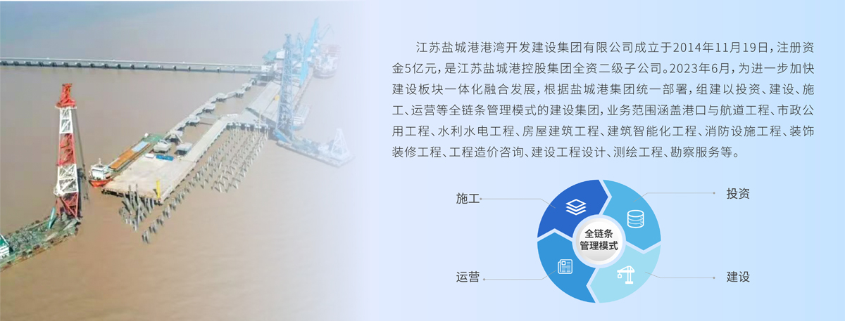 2020年在融入鹽城港集團(tuán)這個(gè)大家庭之后,成功完成化繭成蝶的完美嬗變,工程管理日趨完善,工程技術(shù)日趨精細(xì)。先后承接了大豐港大宗農(nóng)產(chǎn)品倉(cāng)儲(chǔ)物流項(xiàng)目、鹽城港響水港口岸大廈工程、江蘇鹽城港濱海港區(qū)綜合環(huán)境改造提升工程、射陽(yáng)港區(qū)港海商務(wù)廣場(chǎng)項(xiàng)目、射陽(yáng)港一類(lèi)口岸查驗(yàn)設(shè)施工程、響水港一類(lèi)口岸查驗(yàn)設(shè)施工程、大豐港區(qū)集裝箱碼頭堆場(chǎng)工程、鹽城港大豐港區(qū)安保船設(shè)施項(xiàng)目等重點(diǎn)項(xiàng)目。