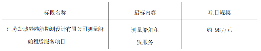 一、?江蘇鹽城港港航勘測(cè)設(shè)計(jì)有限公司 就江蘇鹽城港港航勘測(cè)設(shè)計(jì)有限公司測(cè)量船舶租賃服務(wù)項(xiàng)目進(jìn)行公開招標(biāo),誠(chéng)邀合格的投標(biāo)人前來報(bào)名參加。