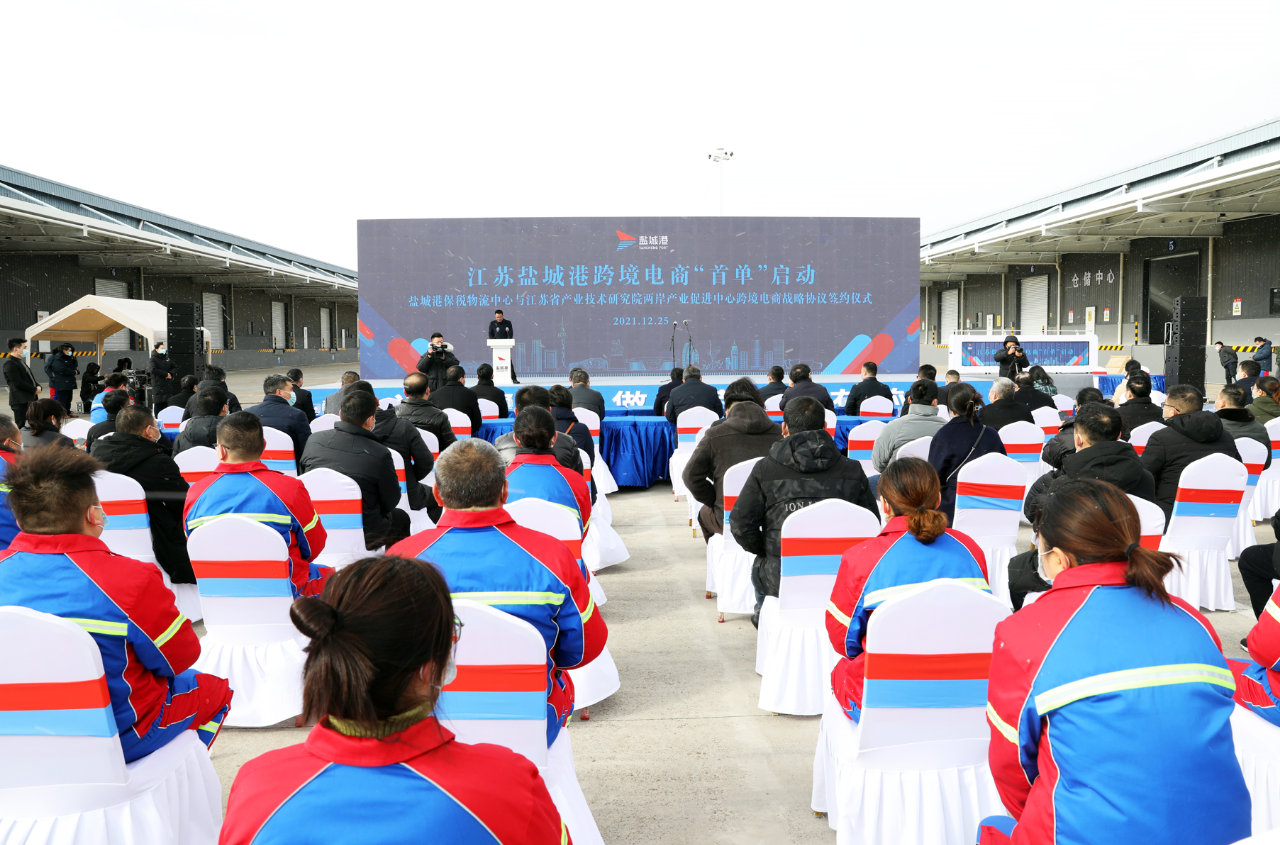 12月25日,江蘇鹽城港跨境電商“首單”啟動暨鹽城港保稅物流中心與江蘇省產業技術研究院兩岸產業促進中心跨境電商戰略協議簽約儀式,在鹽城港保稅物流中心隆重舉行。集團黨委書記、董事長、總經理周正雄,鹽城海關副關長李健,市商務局副局長喬振,市國資委副主任成友貴,集團黨委委員、紀委書記周旭東,集團總經理助理孫永峰以及大豐區相關部門負責同志出席啟動儀式并鑒簽。集團黨委委員、董事、副總經理夏立新主持活動。