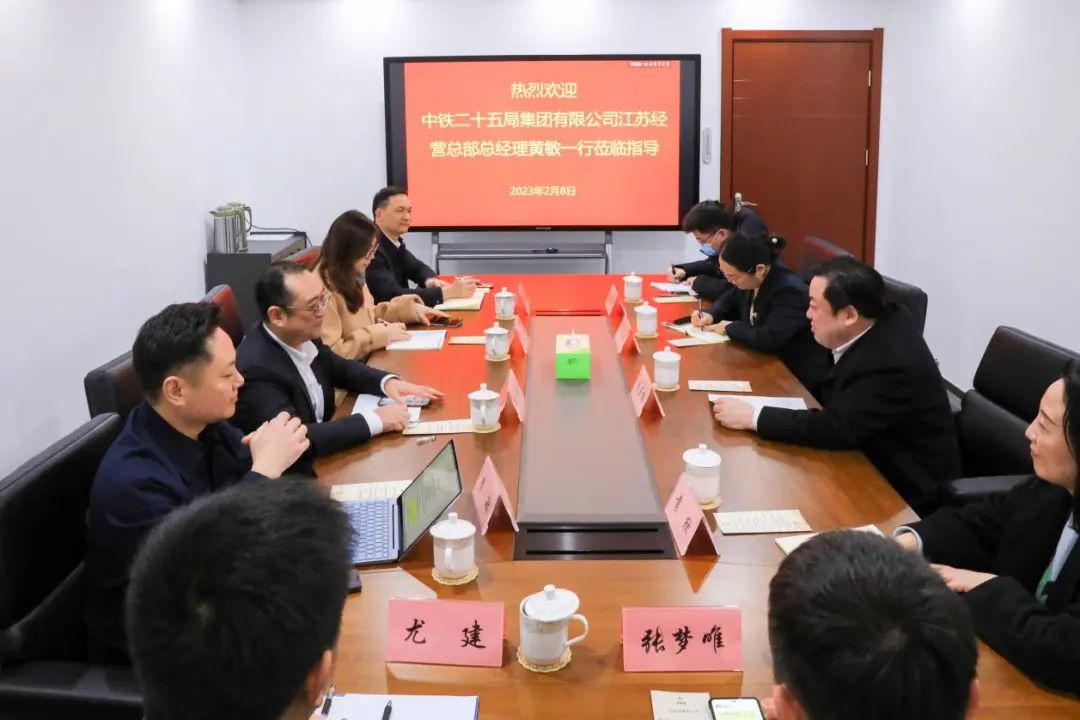 2月8日,中鐵二十五局集團有限公司江蘇經營總部總經理黃敏率隊拜訪我集團,就相關項目合作展開交流。集團黨委書記、董事長周正雄接待黃敏一行。集團副總經理袁欣,集團相關部門負責同志等參加。
