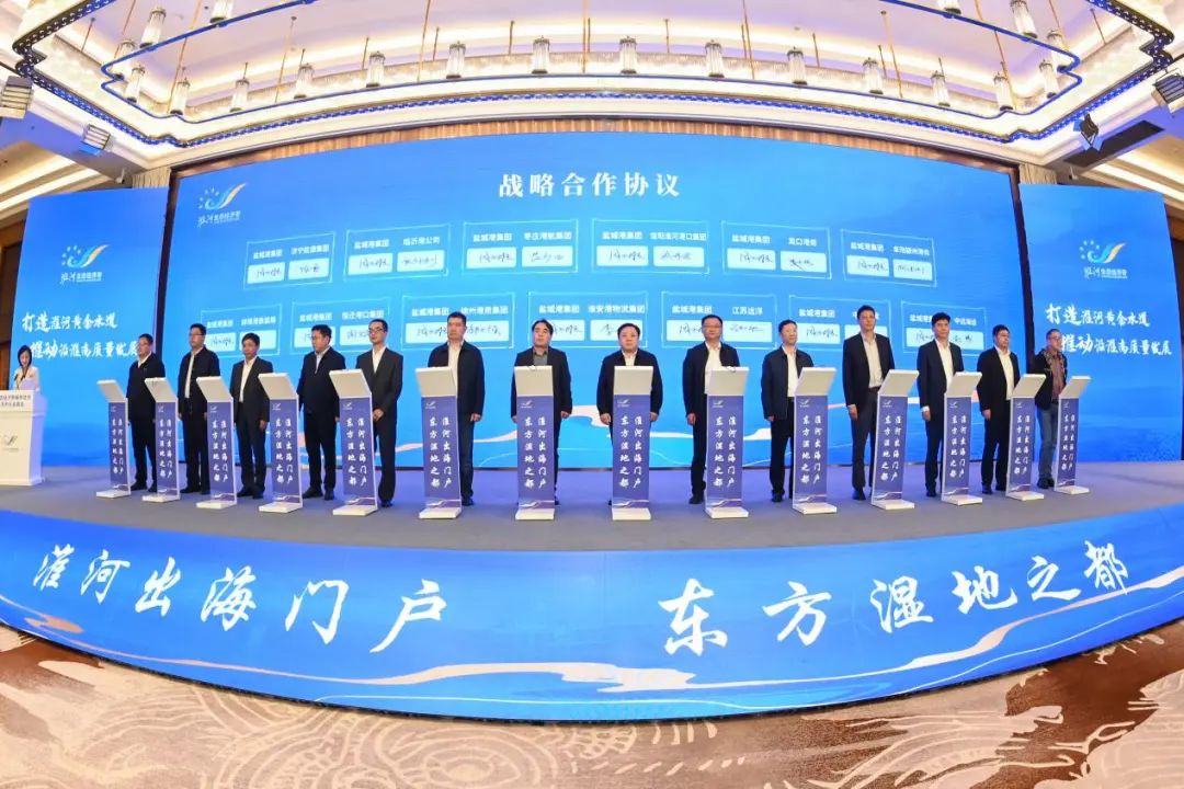 10月29日,在淮河生態(tài)經(jīng)濟(jì)帶城市合作第5次市長(zhǎng)會(huì)商會(huì)上,集團(tuán)黨委書記、董事長(zhǎng)周正雄代表集團(tuán)與江蘇徐州港務(wù)(集團(tuán))有限公司、蚌埠港國(guó)際集裝箱碼頭有限公司等13家淮河沿線港口、物流企業(yè)集中簽署戰(zhàn)略合作協(xié)議,共同打造“黃金水道”,共享“淮河出海門戶港”區(qū)位優(yōu)勢(shì)。