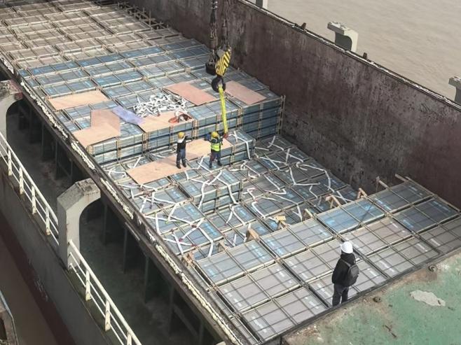 業(yè)務(wù)前端專項(xiàng)攻堅(jiān),全過程保障高效順暢。為確保新貨種順利落地,港區(qū)攬貨組充分發(fā)揮攻堅(jiān)作用,提前與客戶、船方深度對(duì)接,全面掌握貨物特性、存儲(chǔ)要求與作業(yè)需求。針對(duì)光伏玻璃的存儲(chǔ)與轉(zhuǎn)運(yùn)要求,量身定制專項(xiàng)卸船及堆存方案,優(yōu)化碼頭前沿與后方堆場(chǎng)的動(dòng)線銜接,實(shí)現(xiàn)“船到即卸、過程跟蹤”,確保了首船作業(yè)各環(huán)節(jié)無縫連接、高效運(yùn)行。