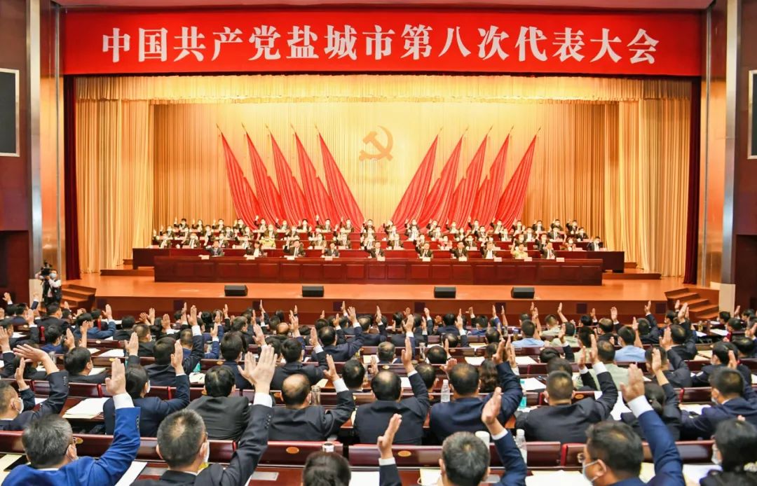 在雄壯的《國際歌》聲中,中國共產(chǎn)黨鹽城市第八次代表大會勝利閉幕。