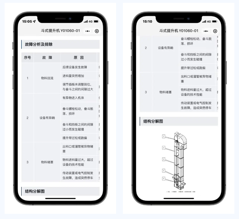 巡檢及維保人員只需通過微信掃描設備上的二維碼,即可對照小程序檢查條目逐條確認并記錄工作內容,快速記錄設備狀態、檢修設備,也可以根據小程序中顯示的設備常見故障以及排除方法,第一時間判斷設備問題并及時通知機務進行修復,及時消除存在隱患。