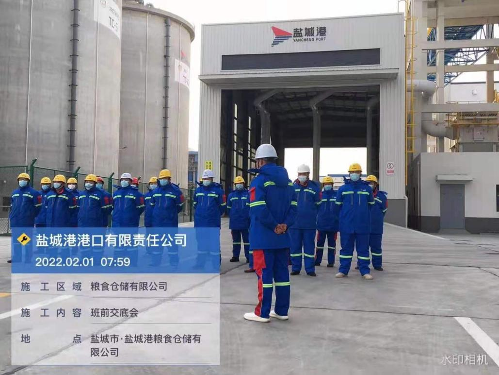 農(nóng)歷正月初一,鹽城港大豐港區(qū)港口公司各子(分)公司在碼頭(作業(yè)現(xiàn)場),如往常一樣準(zhǔn)點(diǎn)開始作業(yè)班前會(huì),進(jìn)行安全生產(chǎn)、疫情防控工作交底。