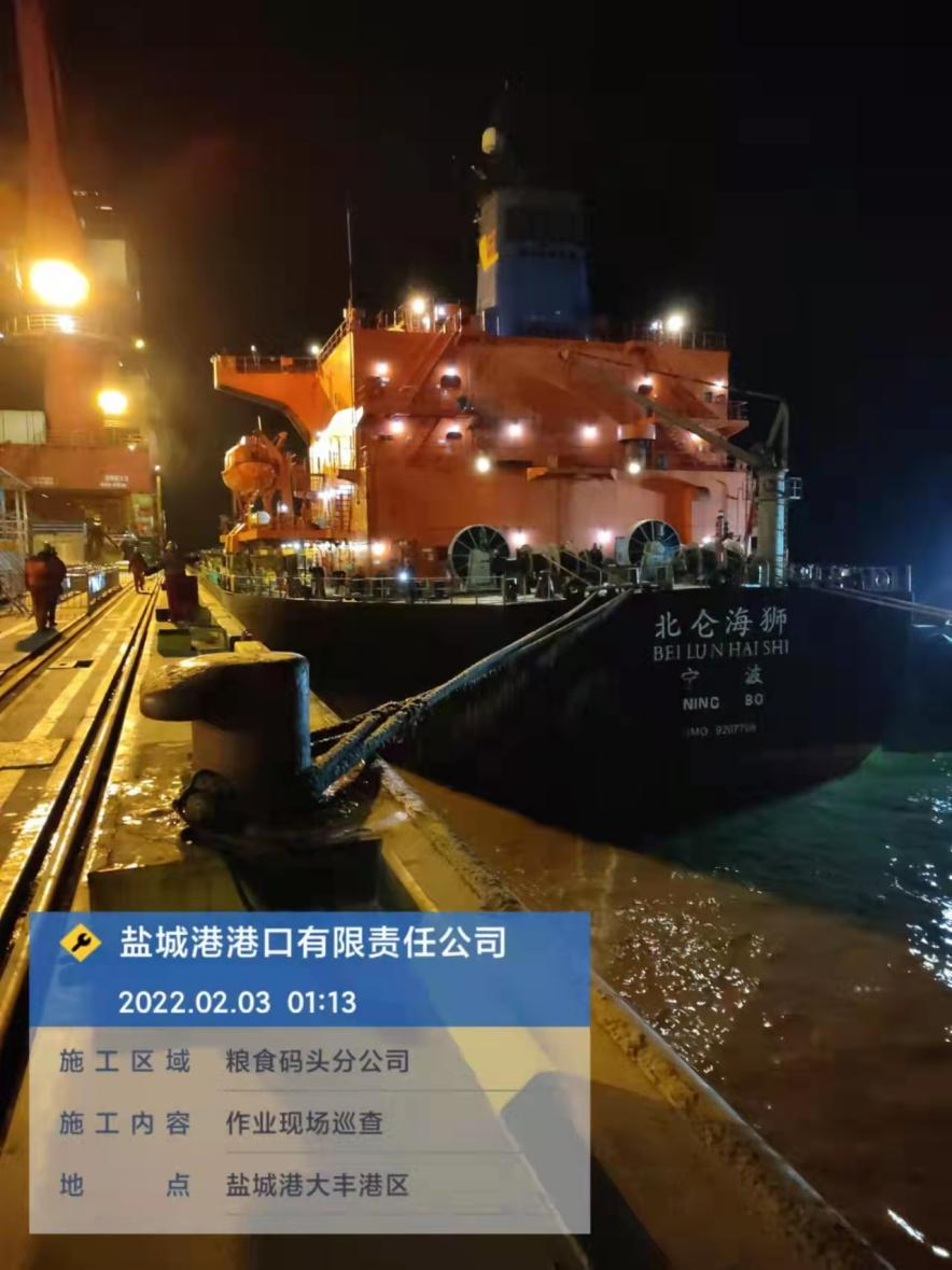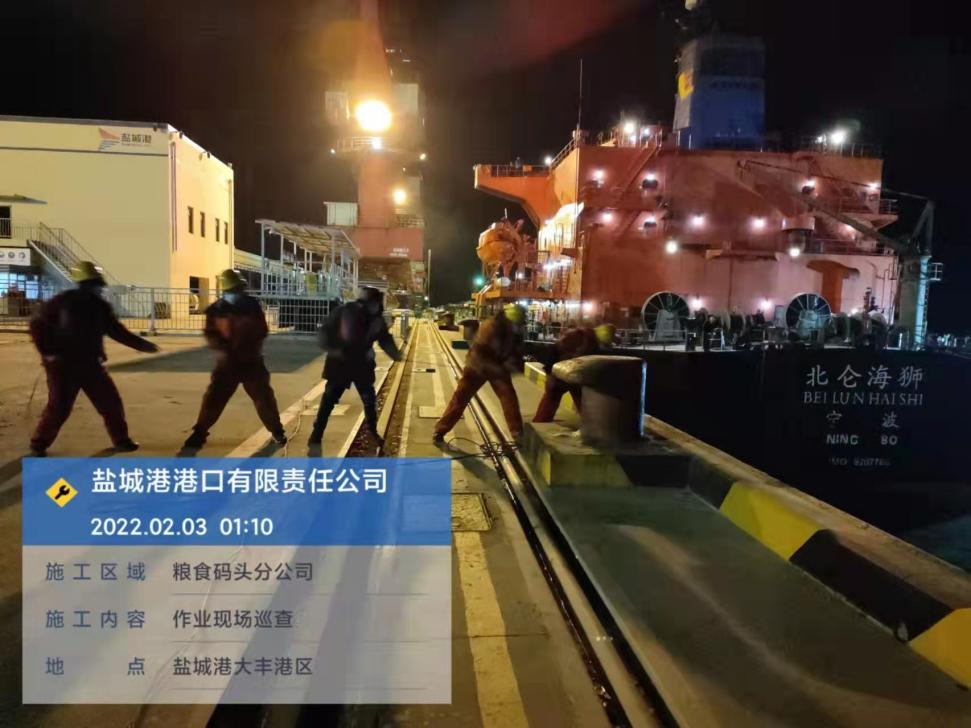 農(nóng)歷正月初三,鹽城港大豐港區(qū)港口公司碼頭共停泊4條外貿(mào)船作業(yè),公司安全管理人員進(jìn)行了24小時(shí)不間斷巡查。