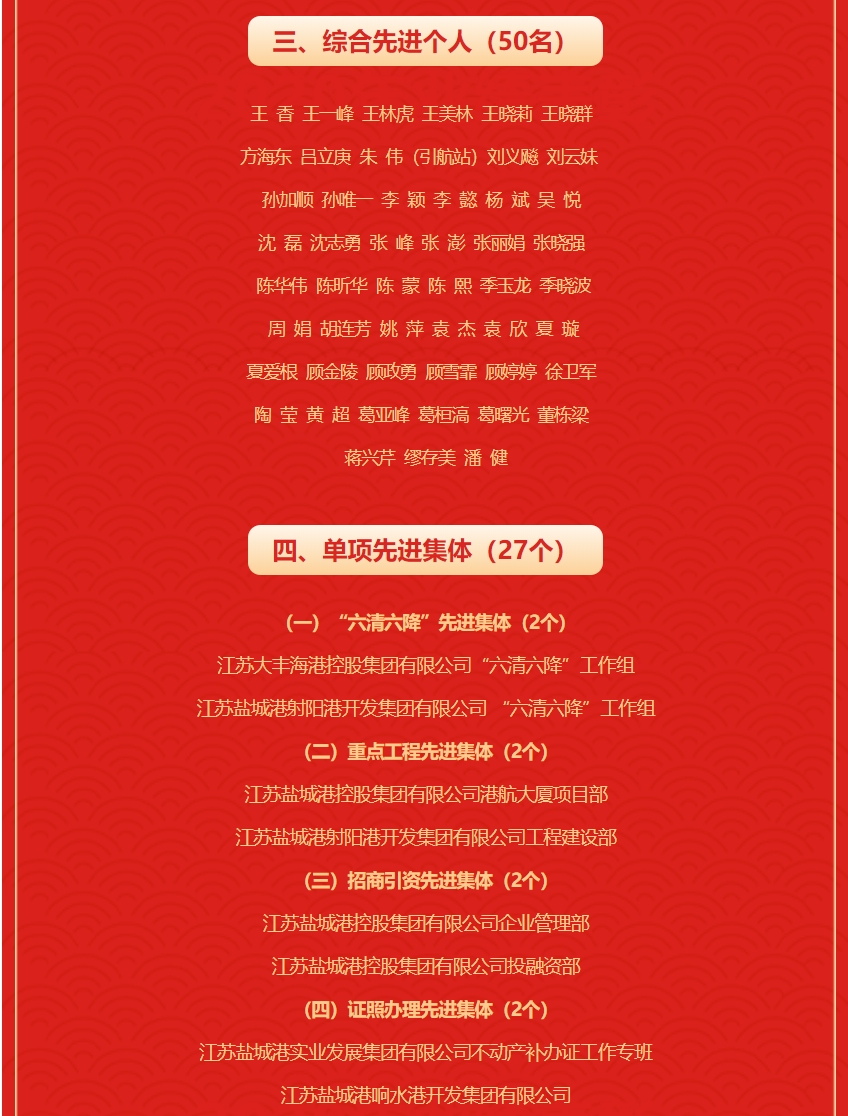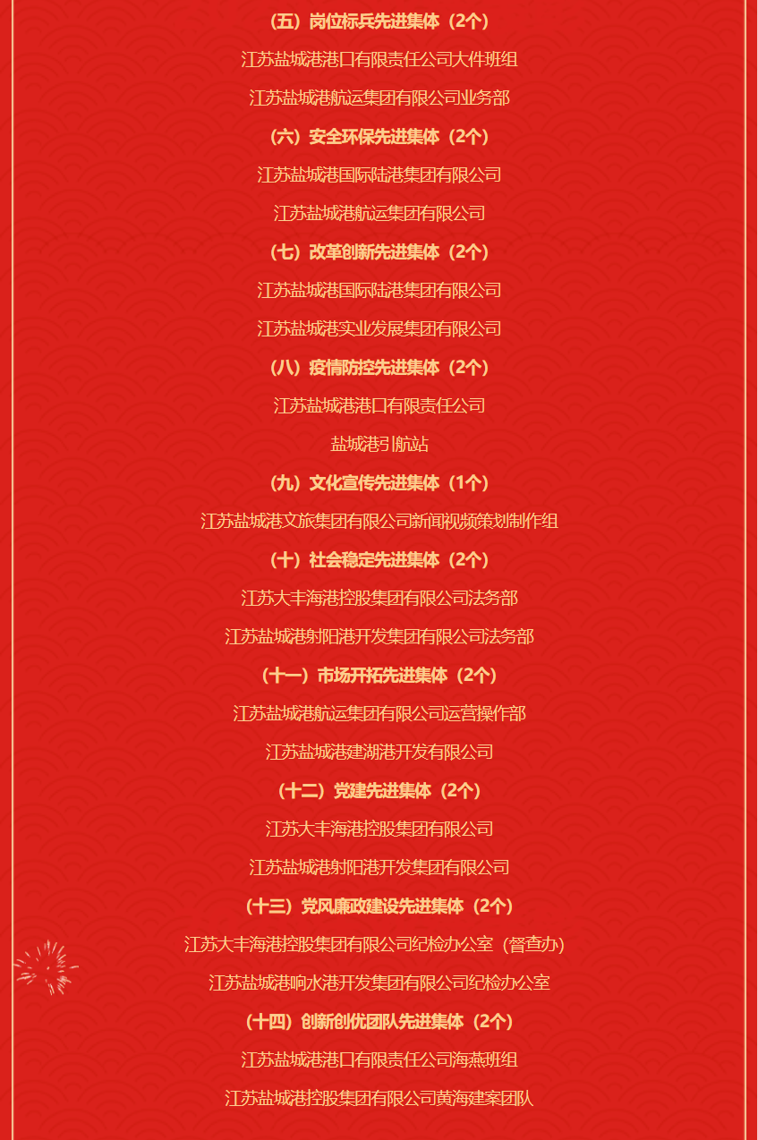 江蘇鹽城港控股集團(tuán)有限公司 2021年度先進(jìn)集體及個人名單