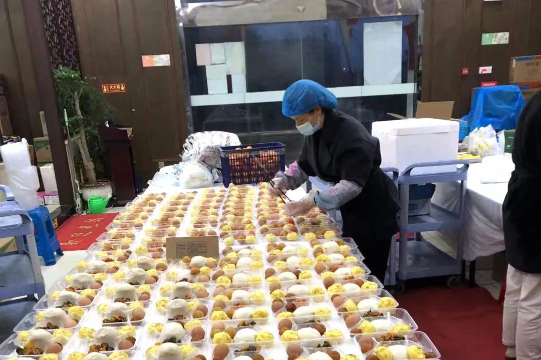 天空微微泛白,海鮮酒店廚房已經燈火通明,面點師傅早早到崗做早餐,工作人員將準備好的570份早餐配送至健康驛站等六個疫情防控卡口,為奮戰在一線的抗疫人士提供暖心早餐,風雨無阻。