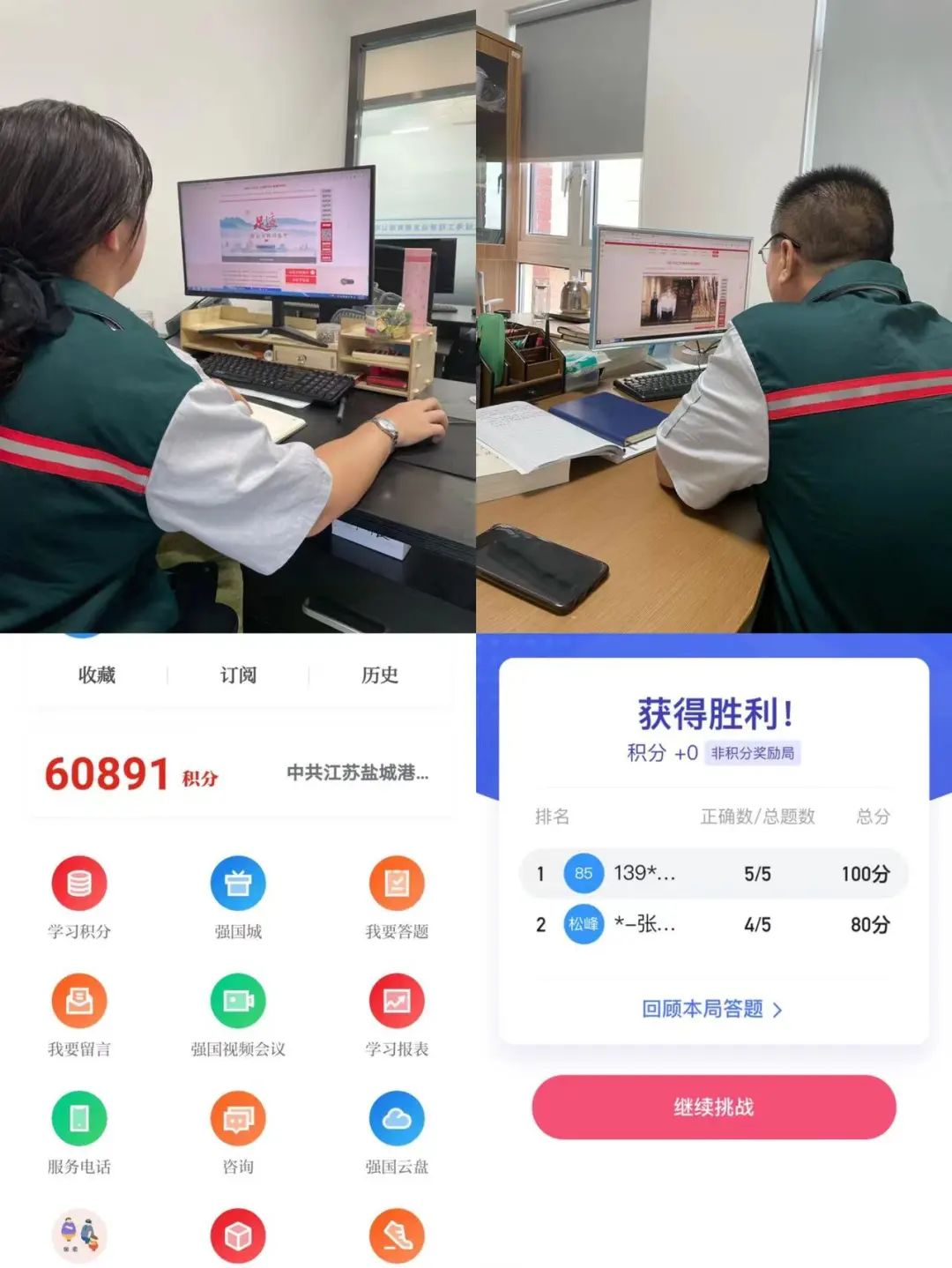 同時(shí),為持續(xù)鞏固黨史學(xué)習(xí)教育成果,推動(dòng)黨的創(chuàng)新理論學(xué)習(xí)往深里走,往實(shí)里走,往心里走。工程建設(shè)黨支部組織還開(kāi)展了“學(xué)習(xí)強(qiáng)國(guó)”知識(shí)答題競(jìng)賽,運(yùn)用“學(xué)習(xí)強(qiáng)國(guó)”APP開(kāi)展“雙人對(duì)戰(zhàn)”以及挑戰(zhàn)答題,以實(shí)戰(zhàn)檢驗(yàn)學(xué)習(xí)成果,進(jìn)一步增強(qiáng)黨員同志的“學(xué)習(xí)強(qiáng)國(guó)”意識(shí),推動(dòng)黨史學(xué)習(xí)教育入腦入心,掀起了“掌上”學(xué)理論、悟思想的新高潮。