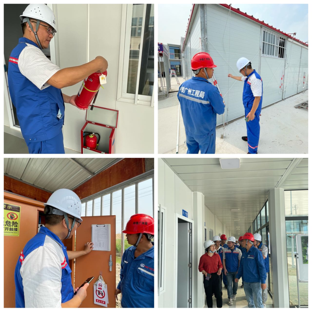 隨后,飛行檢查組前往射陽港區通用碼頭四期工程項目部,對臨建設施安全隱患,特別是對消防臨時設施、臨時用電接電、生活用房防臺加固措施等進行檢查。