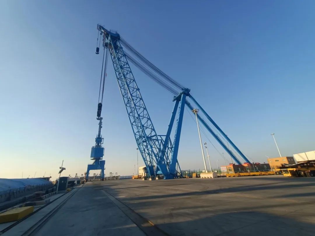 桅桿式起重機(jī)(俗稱桅桿吊),桅桿吊是一種能吊裝其他起重機(jī)械難以吊裝的特殊構(gòu)筑物和重大結(jié)構(gòu)的起重機(jī),鹽城港桅桿吊主要從事風(fēng)電相關(guān)的塔筒及風(fēng)葉等大型配件其他相關(guān)大型設(shè)備的吊裝,目前響水、大豐、射陽均有相應(yīng)的起重設(shè)備,其中響水重件碼頭桅桿吊起重負(fù)荷可高達(dá)1250噸,為華東地區(qū)最大負(fù)荷的港口起重設(shè)備。