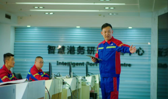 工位描述:碼頭上的人、車、機、貨都要聽現場調度員的指揮,他們保障著每條作業線的穩定流暢、高效有序。