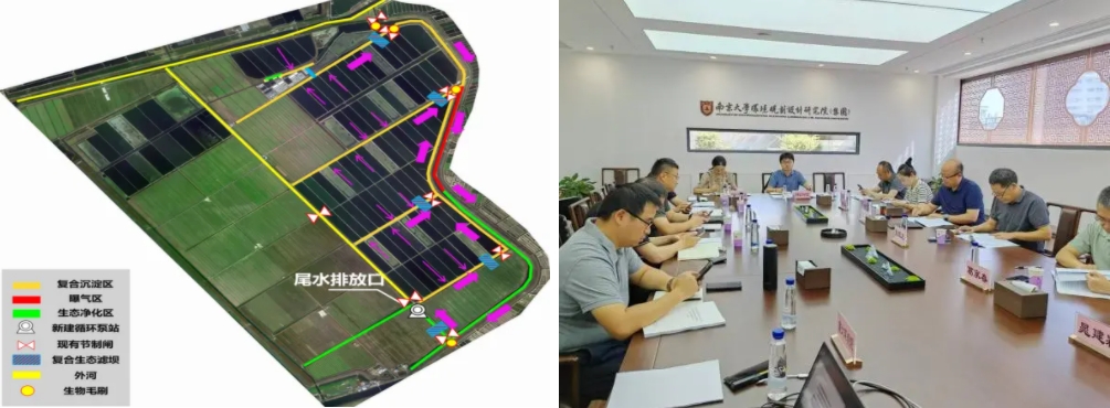 為明確區(qū)域尾水治理方案,農(nóng)業(yè)科技集團(tuán)通過(guò)公開(kāi)招標(biāo),委托南京大學(xué)環(huán)境規(guī)劃設(shè)計(jì)研究院集團(tuán)股份公司編制《東方綠洲養(yǎng)殖區(qū)域養(yǎng)殖尾水治理工程實(shí)施方案》《生物多樣性評(píng)價(jià)報(bào)告》以及《有限人為活動(dòng)論證報(bào)告》。為了更快、更好編制方案,農(nóng)業(yè)科技集團(tuán)明確專(zhuān)人和編制單位深入養(yǎng)殖區(qū),詳細(xì)了解區(qū)域溝塘分布、養(yǎng)殖品種、數(shù)量、密度、尾水排放集中期、水量及周邊企業(yè)污水排放等情況,對(duì)項(xiàng)目區(qū)內(nèi)6處點(diǎn)位水質(zhì)進(jìn)行取樣檢測(cè)。通過(guò)現(xiàn)場(chǎng)情況分析,計(jì)劃建設(shè)尾水凈化區(qū)約1746.93畝(占養(yǎng)殖凈面積約11.65%,占整個(gè)養(yǎng)殖區(qū)域9.95%),尾水總停留時(shí)間11.75天,日處理能力約20萬(wàn)方,確保養(yǎng)殖尾水排放達(dá)到《池塘養(yǎng)殖尾水排放標(biāo)準(zhǔn)》(DB32/4043-2021)淡水受納水域一級(jí)標(biāo)準(zhǔn)。