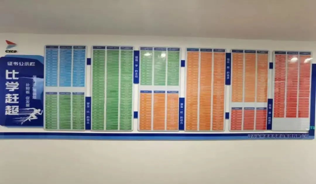深化人才培養(yǎng),營造比學(xué)趕超濃氛圍。全面實(shí)行A/B崗制度,合理分配“老中青”隊(duì)伍,通過項(xiàng)目一線鍛煉和培養(yǎng)中青年骨干人才。通過設(shè)立證書公示墻,激發(fā)全員“比學(xué)趕超”的考證氛圍,共考取一級(jí)建造師、二級(jí)建造師、高級(jí)工程師、中級(jí)工程師等證書15項(xiàng),著力打造港航專業(yè)隊(duì)伍。