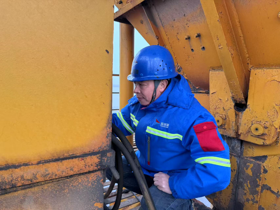 科技集團(tuán)港機(jī)公司的技術(shù)運(yùn)維部孫書林,舍小家為大家,寒風(fēng)雖冷,但心是熱的。他巧用扳手等工具,細(xì)心檢查大車行走限位,及時排除故障,用實(shí)際行動默默守護(hù)節(jié)日期間的設(shè)備運(yùn)轉(zhuǎn),為港口運(yùn)營增添動能。