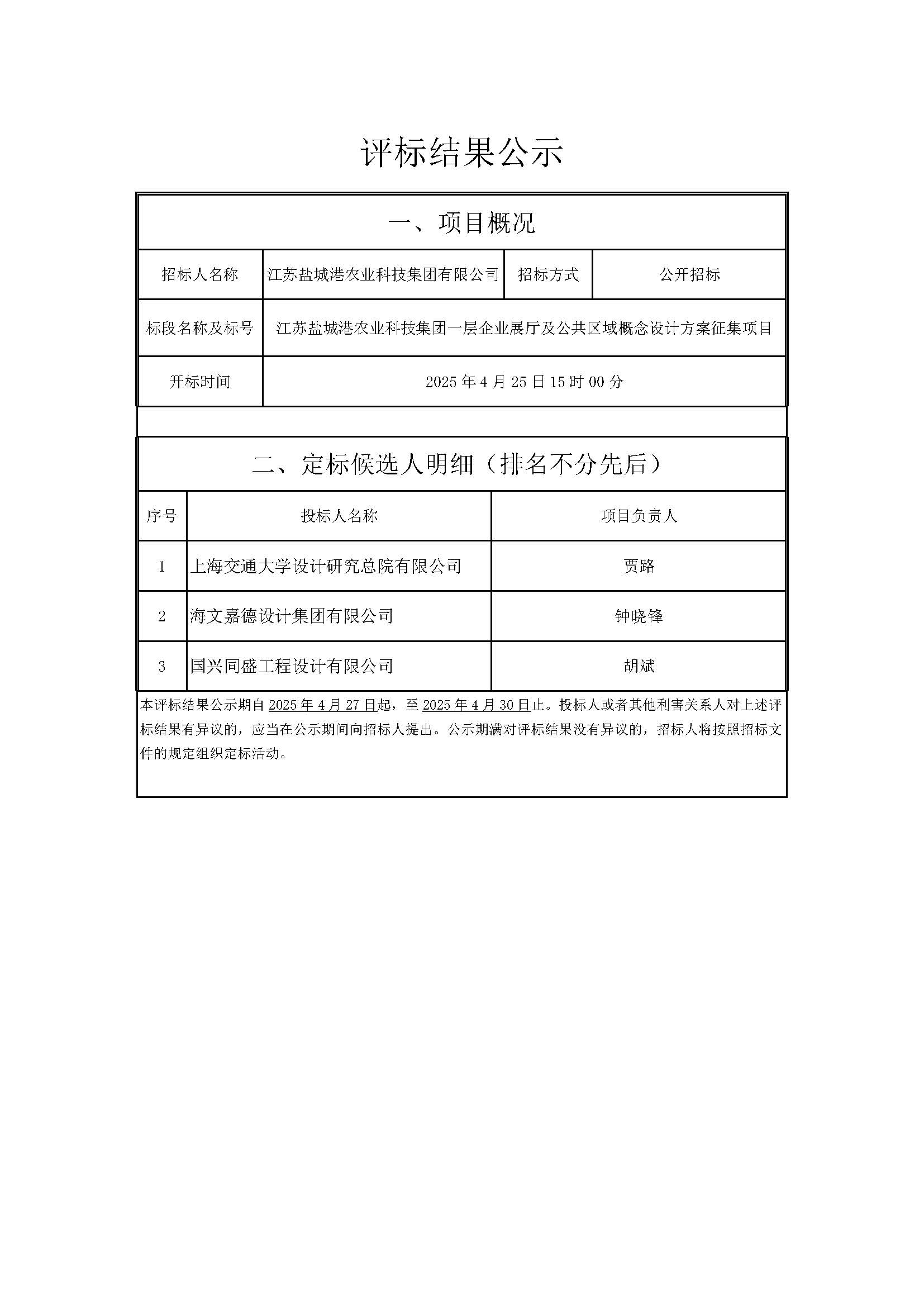 評標結果公示