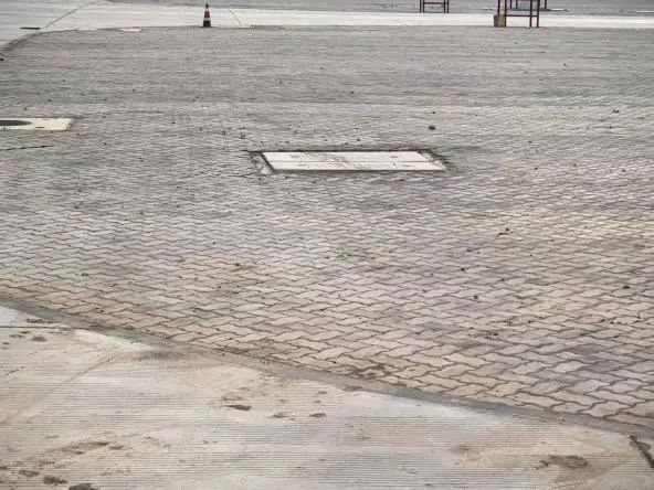 對掀開井蓋立即回填,采用鋼筋混凝土蓋板封閉,蓋板邊緣與地面齊平,周邊用細沙壓實。