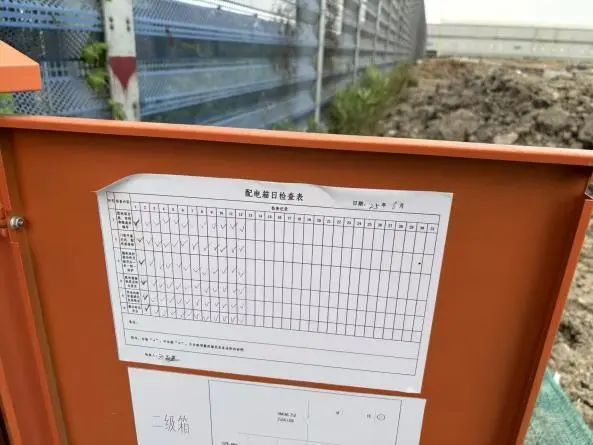 施工區(qū)域發(fā)現(xiàn)1個二級配電箱檢查記錄未及時更新,未做到每日一檢,存在漏電、觸電風險。