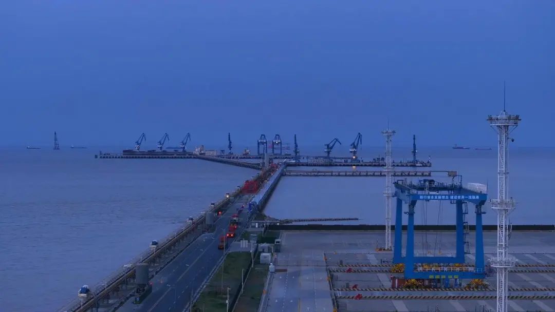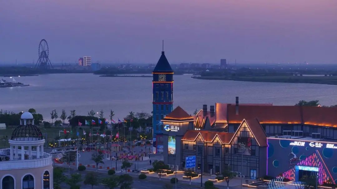 “藍調時刻”的魅力,在于它的短暫與永恒共生。當最后一縷天光消失,港區并未沉入黑暗——龍門吊的警示燈如紅色螢火,港泊文旅上演著精彩的燈光秀,把跨境電商商貿小鎮變成了一幅賽博朋克風格的數字畫卷。
