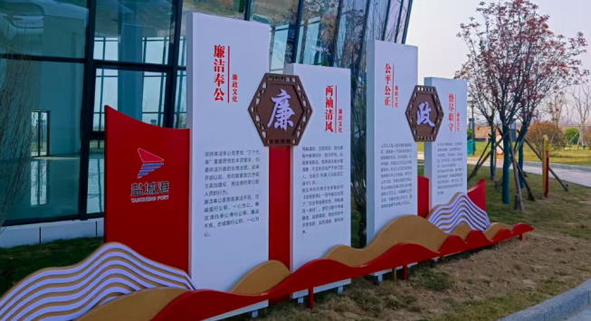 通過召開黨風廉政專題會、班子交心會、重大節(jié)日思廉會、法務知識宣講等,傳達學習集團關于《廉潔風險防控管理工作制度》等要求,推動黨風廉政建設落細落實;利用辦公樓內環(huán)形走廊的空白墻面,樓宇四周的閑置空地因地制宜、系統(tǒng)規(guī)劃,將廉潔文化與港口企業(yè)文化深度融合,精心打造“廉政文化走廊”與“廉潔文化墻”,把清風傳承潤“海港”的思想理念融入港區(qū)生產經營、黨建管理、項目建設、安全生產等工作全過程,根植“港口有魂、心中有責、眼中有光”的擔當?shù)咨?/p>