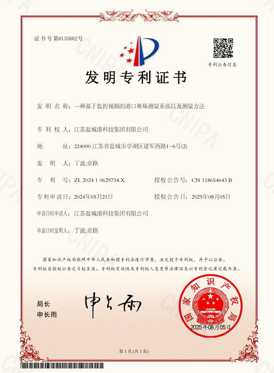 近日,集團(tuán)科技創(chuàng)新課題《基于港區(qū)視頻的港口堆垛智能化測(cè)量作業(yè)系統(tǒng)》成功斬獲雙項(xiàng)核心知識(shí)產(chǎn)權(quán)——《一種基于視頻監(jiān)控的港口堆垛測(cè)量系統(tǒng)及測(cè)量方法》發(fā)明專利與《散貨堆垛三維重建可視化系統(tǒng)》計(jì)算機(jī)軟件著作權(quán),同時(shí)系統(tǒng)已在響水港區(qū)散雜貨堆場(chǎng)實(shí)現(xiàn)試點(diǎn)應(yīng)用落地,不僅驗(yàn)證了技術(shù)的可行性與穩(wěn)定性,更標(biāo)志著集團(tuán)“從技術(shù)研發(fā)到成果轉(zhuǎn)化”的創(chuàng)新鏈路貫通,港口智能化升級(jí)邁出實(shí)質(zhì)性步伐。