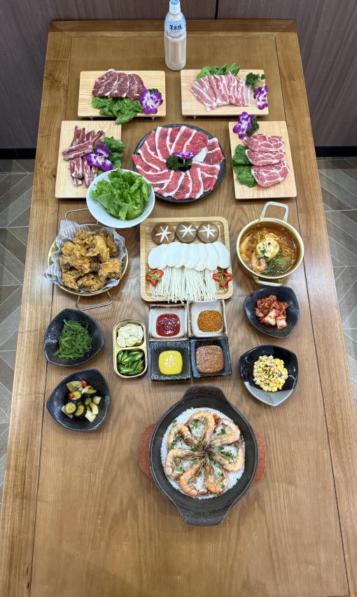 ·烤牛五花焦香四溢,厚切豬五花油潤不膩,精品豬梅花與雪花牛板腱帶來豐富口感