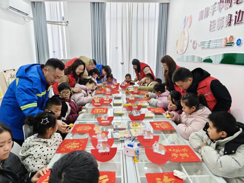 活動當(dāng)日下午,在陳家港鎮(zhèn)未成年人保護工作站的圖書室里,20名留守兒童在志愿者的陪伴下認真閱讀課外書籍,沉浸在書香之中。隨后的游戲環(huán)節(jié)里,志愿者們與孩子們玩起擊鼓傳玩具的游戲,音樂聲時而急促、時而舒緩,每當(dāng)鼓聲停下,拿到玩具的孩子便大方地說出一個帶“馬”字的四字詞語,現(xiàn)場歡聲笑語不斷。在手工制作室,孩子們在志愿者的耐心指導(dǎo)下,動手粘貼馬年玩具,并親手拓印出金光閃閃的“福”字,感受傳統(tǒng)文化的魅力。活動最后,響水港區(qū)志愿者們?yōu)楹⒆觽儼l(fā)放了新年禮品和壓歲紅包,送上滿滿的新春祝福。