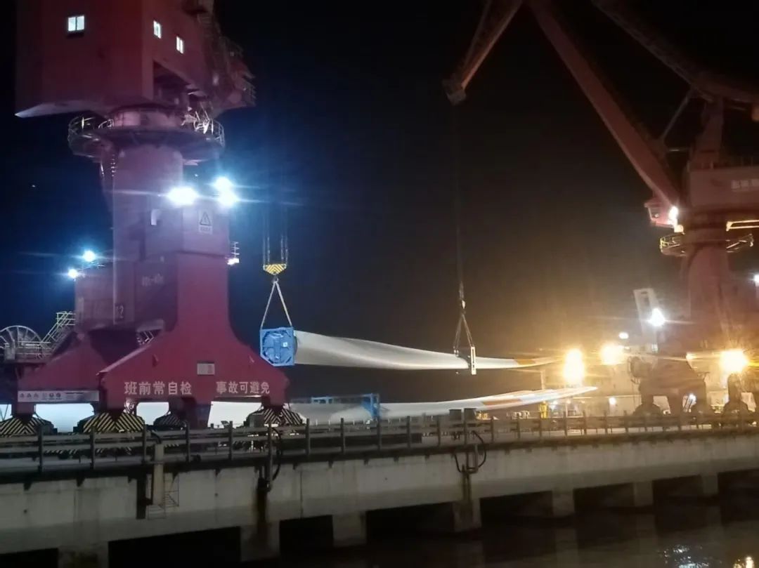 據悉,此次葉片出口項目是遠景能源出口至印度坎德拉港EN-156項目的第5船,裝載量達到20套60片,射陽港區風電公司與業主單位反復溝通并根據碼頭實際情況,連續攻克堆碼數據驗證、作業中雙機聯動半徑實驗與集港運輸數據可行性驗證等技術壁壘,確保作業方案科學有序。