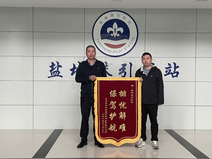 接到求助后,引航站迅速組織專業(yè)團隊趕赴現(xiàn)場。在登輪勘察后,團隊成員綜合研判氣象條件與作業(yè)進度,決定待貨物卸載完畢后再擇機出港。當晚22:00,引航員登輪,在拖輪配合下頂風浪開始引航。面對復雜海況,引航員依托豐富經(jīng)驗謹慎操縱船舶,通過實時監(jiān)測風浪、科學規(guī)劃航線,確保船舶以安全航速穩(wěn)步離港。船舶航行途中遭遇突發(fā)陣風,引航員迅速采取應急措施,及時修正航向,歷經(jīng)數(shù)小時緊張作業(yè),最終成功將“探界者”輪安全引領至外海避風錨地。事后,江蘇鹽城港海融石化碼頭有限公司專程向鹽城港引航站贈送錦旗,書以“排憂解難 保駕護航”表達謝意。