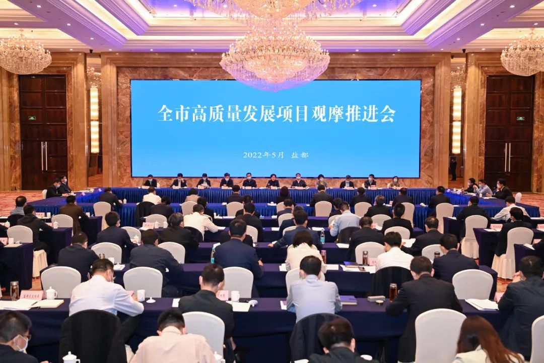 5月10日至11日,我市在鹽都區召開全市高質量發展項目觀摩推進會。市委書記徐纓主持會議并講話,強調要堅持以習近平新時代中國特色社會主義思想為指導,深入貫徹落實習近平總書記在中央政治局常委會會議上的重要講話精神,按照省委常委會會議部署,堅持穩字當頭、穩中求進,堅定信心、保持定力,緊扣高質量發展要求,把“疫情要防住、經濟要穩住、發展要安全”的責任和措施落到實處,確保完成全年各項目標任務,勇當沿海地區高質量發展排頭兵,在大戰大考中奮力奪取疫情防控和經濟社會發展雙勝利。市委副書記、市長周斌,市委常委、市人大常委會主任王榮,市政協主席陳紅紅,市委副書記羊維達等出席。