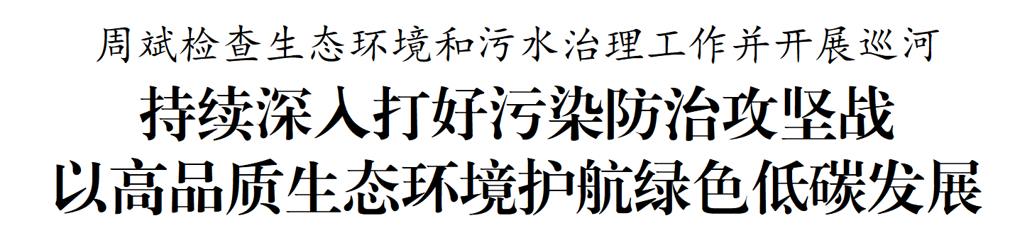 連日來,市委書記周斌分別到全市11個板塊,現場檢查生態環境和污水治理工作并開展巡河。他強調,要深入學習貫徹習近平生態文明思想和對江蘇工作重要講話精神,堅定不移抓好長江大保護,動真碰硬、全力推進突出問題整改,持續深入打好污染防治攻堅戰,加快構建與經濟社會發展相適應的生態環境治理體制機制,以高品質生態環境護航綠色低碳高質量發展。