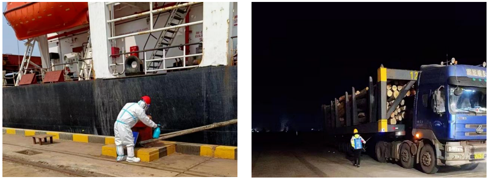 各辦公區(qū)域和生產(chǎn)場所按規(guī)定統(tǒng)一采購消毒液,對人員密集活動區(qū)域進行防疫消殺工作,特別在門崗、磅房、公用衛(wèi)生間、候工室等公共場所進行定期消殺。碼頭靠船作業(yè)嚴格遵照《港口及其一線人員新冠肺炎疫情防控工作指南(第十版)》要求,嚴格執(zhí)行碼頭作業(yè)消殺程序,將“非必要不登船”、開展健康承諾、離港后核酸檢測等工作落細落實。