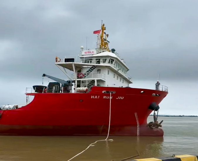 面對“海潤九”輪這一首票整船出口業(yè)務(wù),口岸部門與港區(qū)齊心配合創(chuàng)塑“鹽城速度”,協(xié)同高效開啟“無縫銜接”作戰(zhàn)模式。組織成立專項服務(wù)組,提前介入指導(dǎo)材料申報,將船舶登記、噸位證書核驗等流程前置化處理;啟用“一站式”通關(guān)服務(wù),工作人員全天候駐守響水港區(qū)6號泊位現(xiàn)場辦公,同步開展文書審核與船舶查驗;響水港區(qū)開辟綠色通道,精準(zhǔn)調(diào)度泊位資源,全方位配合口岸部門、船東、船代整船出口業(yè)務(wù)各項需求。