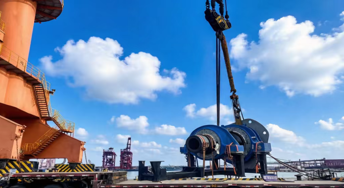 此次新貨種順利作業,是濱海港區深耕市場、精準對接山東港等重點企業產業需求的重要突破。該批新貨種涵蓋3件30噸軸系、2件14噸吊具、2件2.5噸底座及20噸散件,均為風電葉片配套核心部件。為保障首單新貨種作業順利推進,濱海港區提前謀劃、周密部署,專門組建專項工作小組,深入調研貨種特性、裝卸標準及運輸要求,主動聯動海關、海事等口岸單位,優化通關、靠泊全流程,全力實現“即到即靠、即靠即卸”,為高效作業筑牢基礎。